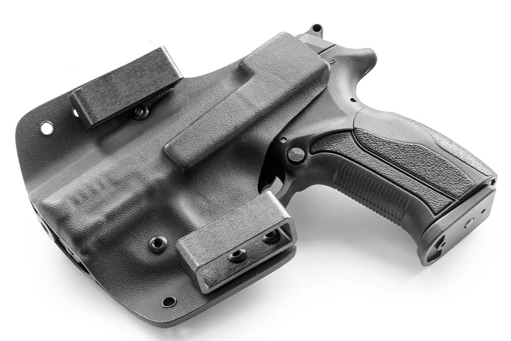 Основное назначение кобуры — ношение пистолета на поясе. Надёжное удержание пистолета в кобуре возможно благодаря фиксации пластика в определённых углублениях пистолета, при этом извлечение пистолета возможно за счёт гибкости материала кобуры. Кобура формована для пістолетів Flarm T910 и Grand Power P1/Q1.поясная пластиковая кобура FLARM T910 Grand Power кайдекс