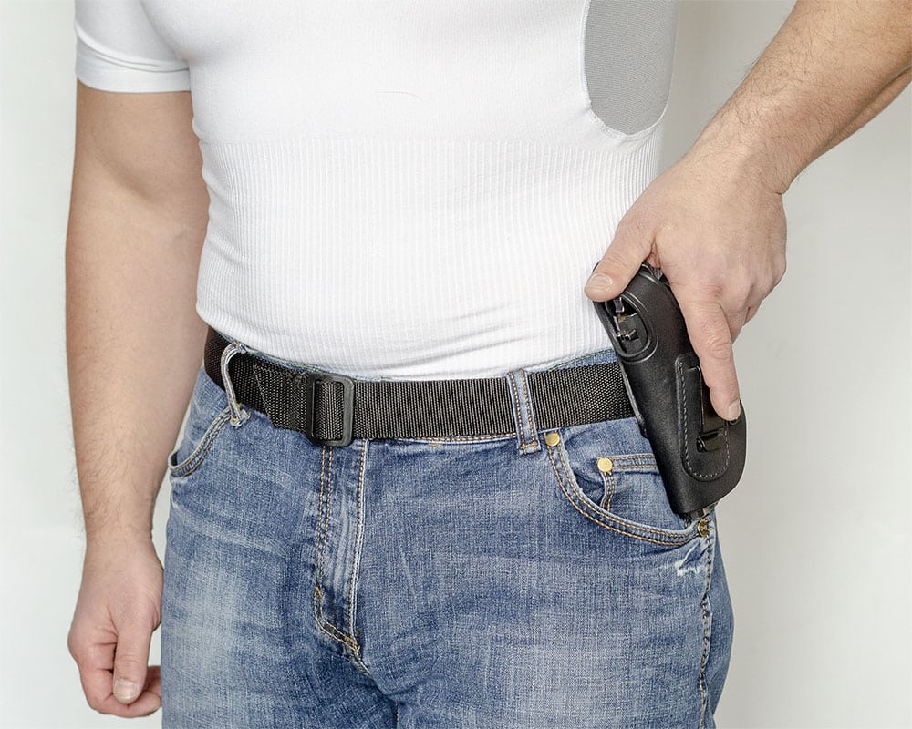 - ношение на брючном ремне шириной до 4 см со стороны рабочей руки и для перекрестного выхватывания;