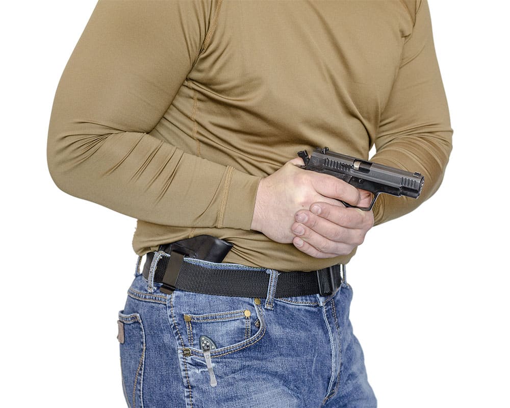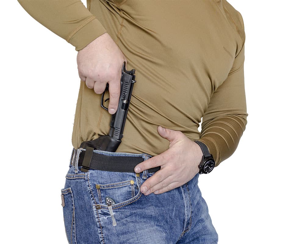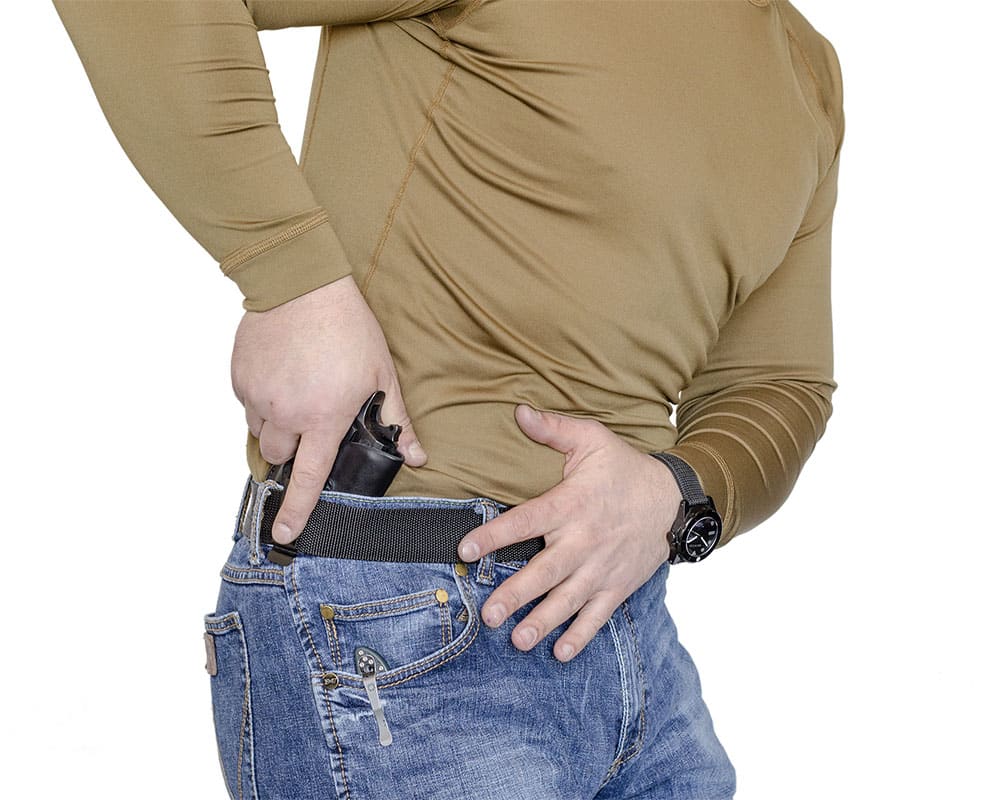- скрытое ношение внутрибрючно — на металлической клипсе;