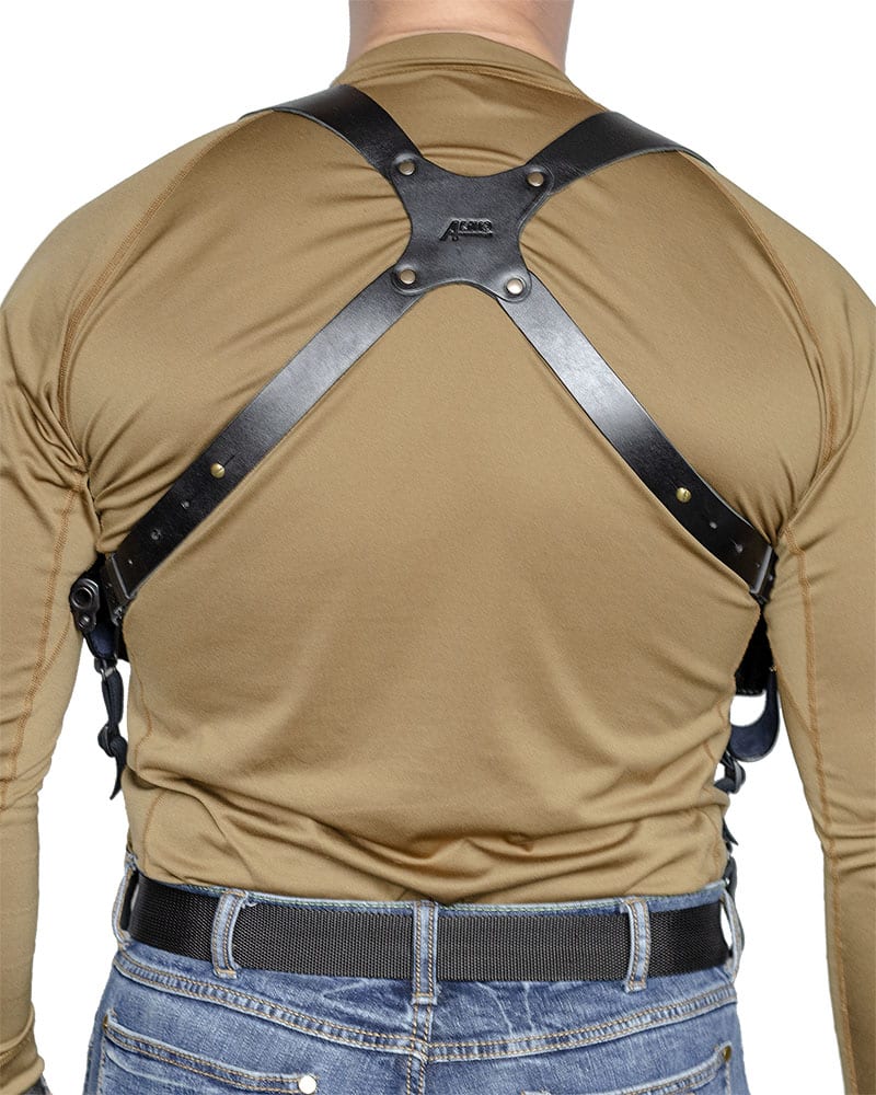 Материал: кобура и подсумок — трехслойный термосендвич (кожа+термопласт+замша), плечевые лямки — кожа