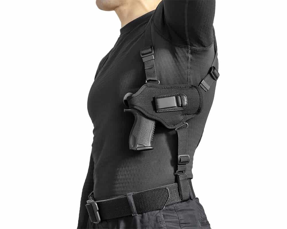 - ношение на брючном ремне шириной до 4 см со стороны рабочей руки и для перекрестного выхватывания;