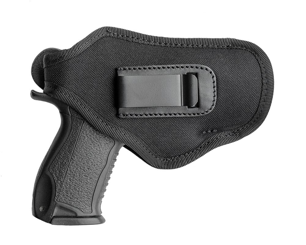 - скрытое ношение внутрибрючно — на металлической клипсе, быстросъёмное крепление;
