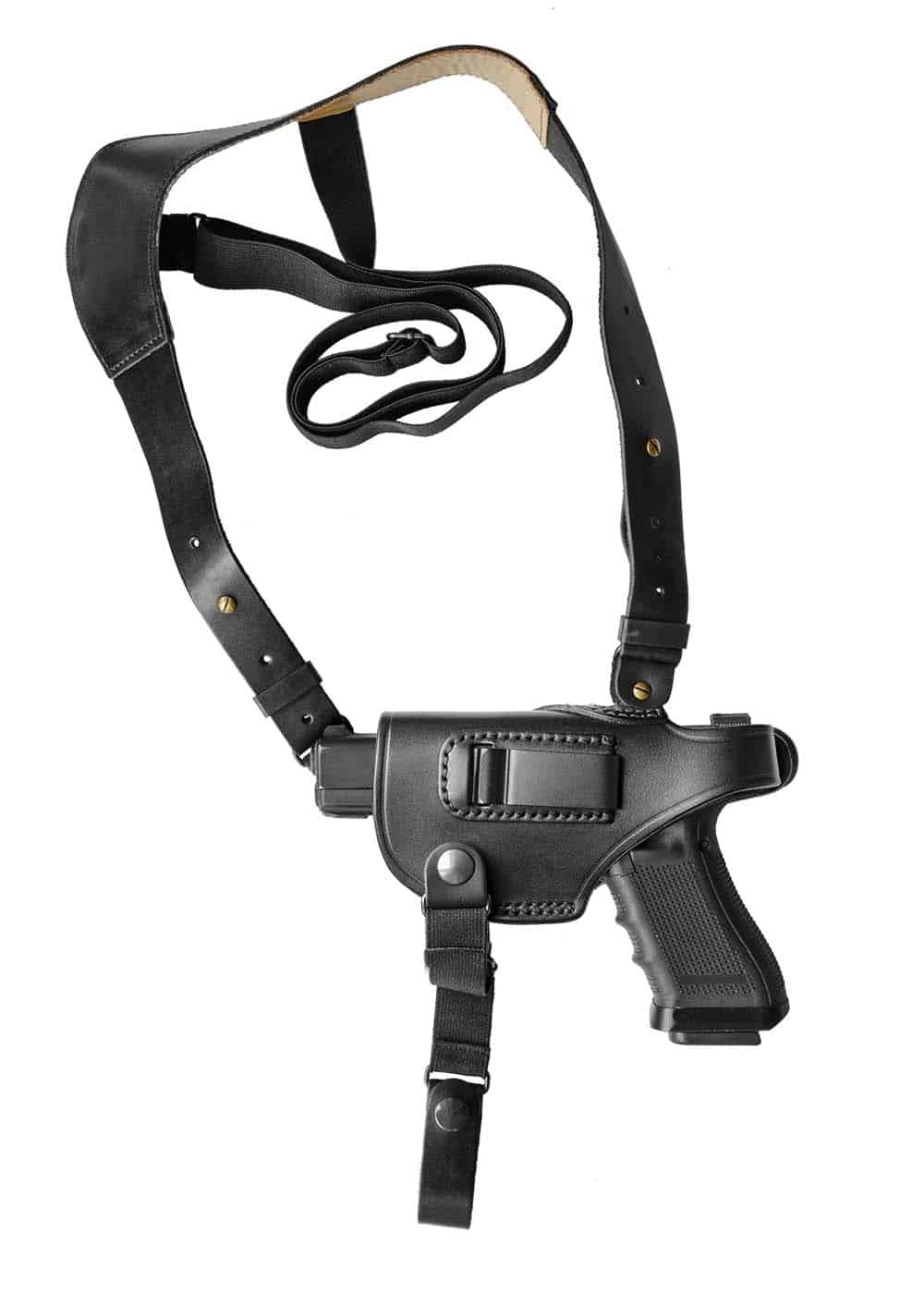 Основное назначение кобуры — ношение пистолета под плечом, на поясе и внутрибрючно. Кобура подходит для большинства моделей пистолета Glock, в том числе Glock-17/19/45.кобура оперативная кожаная для glock 17 левша глок