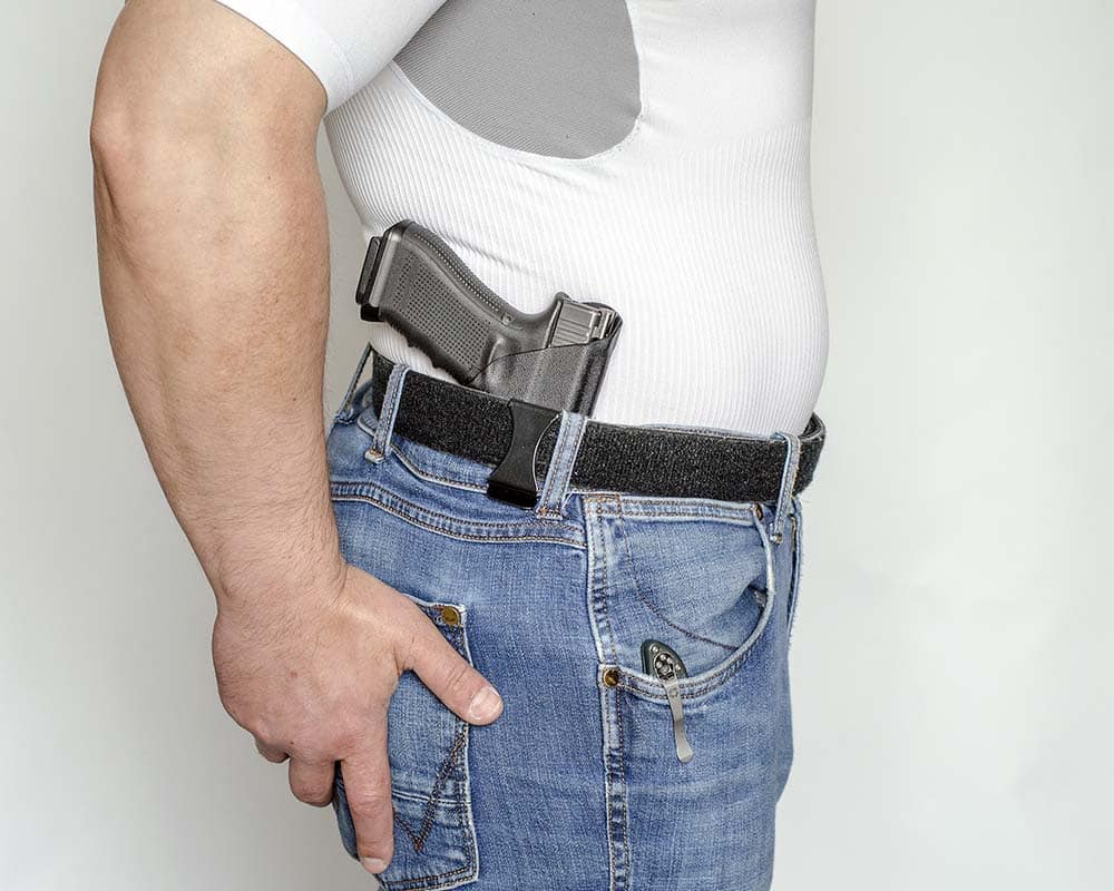 Кобура для скрытой переноски оружия внутрибрючно. Кобура подходит для большинства моделей пистолета Glock, в том числе Glock-17/19/45.