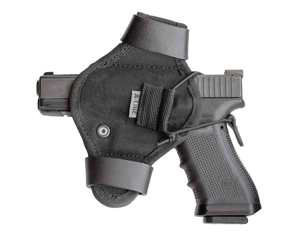 Назначение кобуры — ношение пистолета на поясе. Надежное удержание пистолета в кобуре — благодаря обжиму пистолета и застёжке. Кобура подходит для большинства моделей пистолета Glock, в том числе Glock-17/19/45.кобура для глока с92 a-line