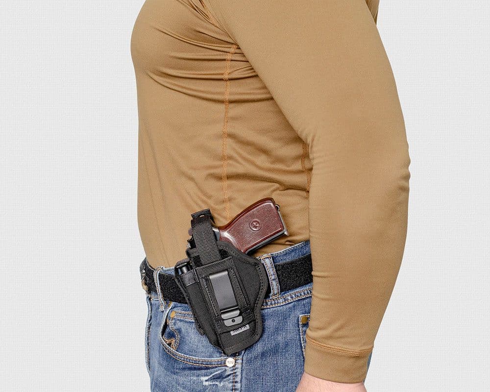 Совместимость кобуры — Пистолет Макарова (огнестрельный, травматический, газовый, пневматический) и его модификации (ВИЙ, Baikal МР-654К, Umarex Makarov, KWC KM44D), а так же другие модели, близкие к этим пистолетам по конструкции и габаритам.