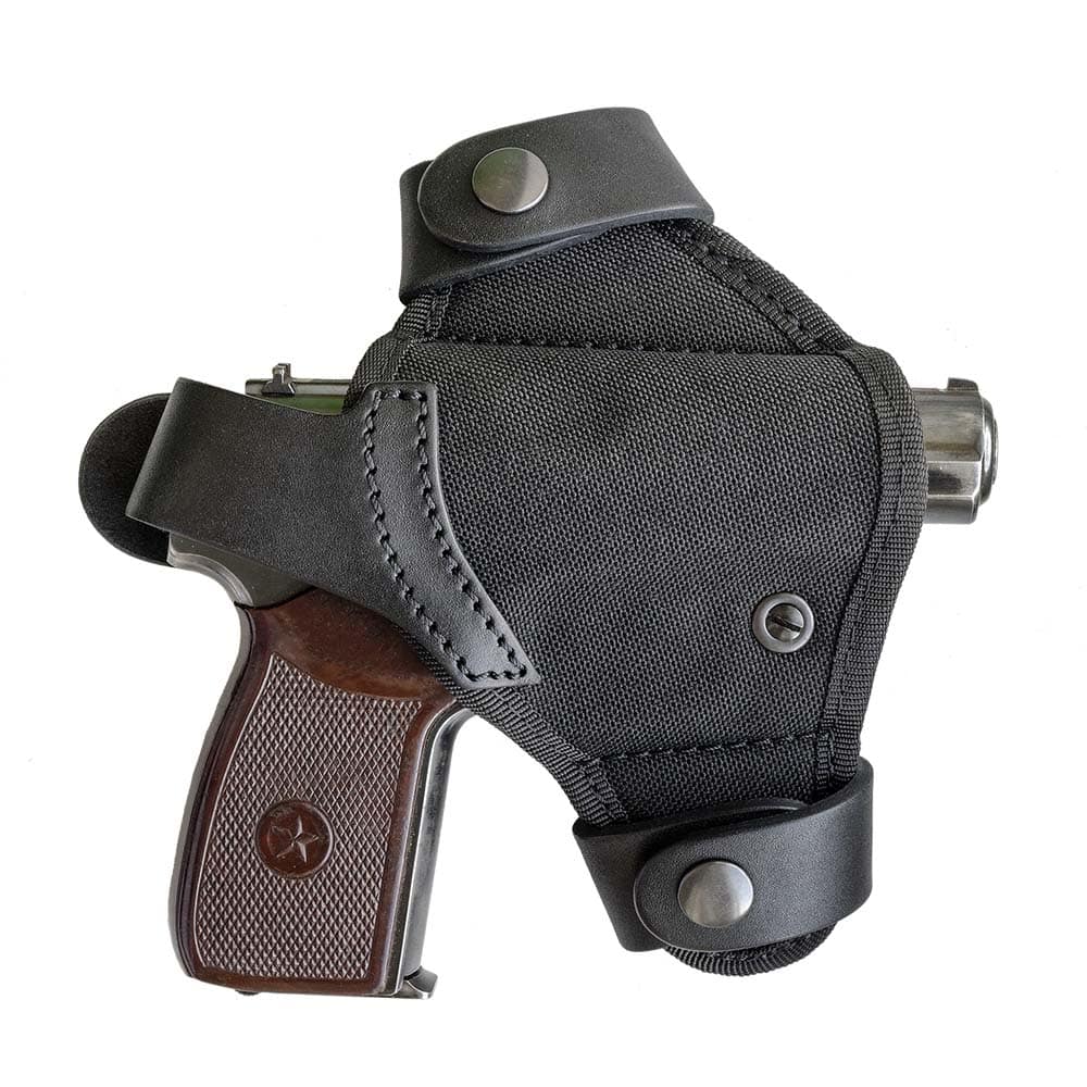 Совместимость кобуры — Пистолет Макарова (огнестрельный, травматический, газовый, пневматический) и его модификации (ВИЙ, Baikal МР-654К, Umarex Makarov, KWC KM44D), а так же другие модели, близкие к этим пистолетам по конструкции и габаритам.