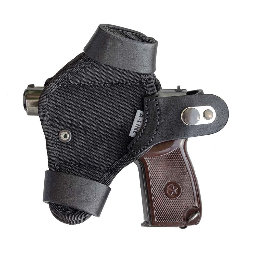 Основное назначение кобуры — ношение пистолета на поясе. Надежное удержание пистолета в кобуре возможно благодаря обжиму пистолета и клапану.купить кобуру на пм киев с9 a-line Umarex Makarov