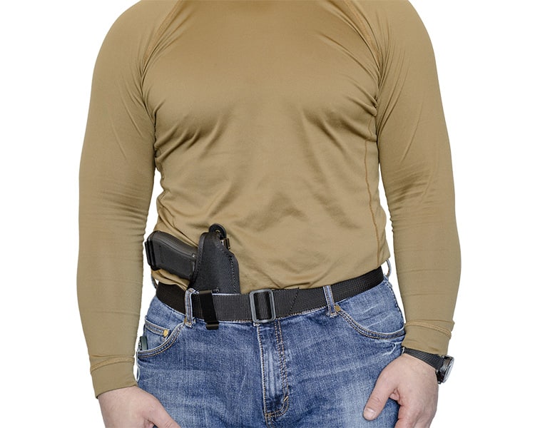 - скрытое ношение внутрибрючно — на металлической клипсе, быстросъёмное крепление;