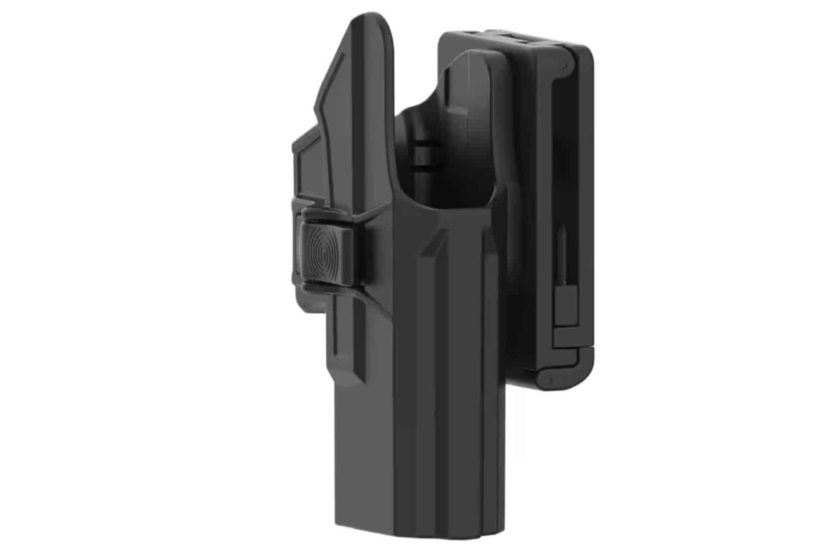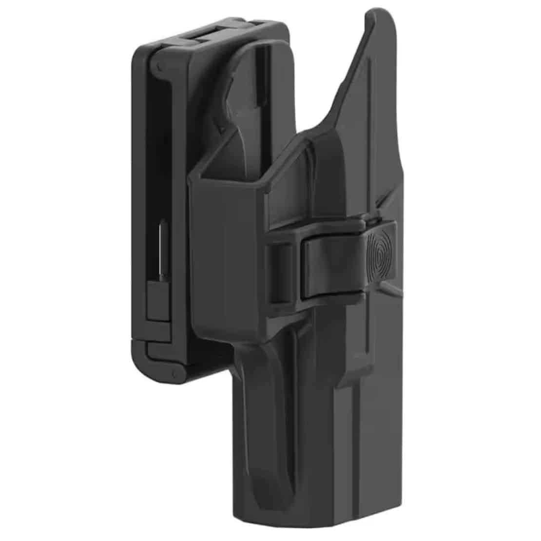 Основное назначение кобуры — ношение пистолета на поясе. Надёжное удержание пистолета в кобуре возможно благодаря обжиму пистолета пластиком и замку, который разблокируется нажатием на кнопку указательным пальцем. Кобура подходит для большинства моделей пистолета Glock, в том числе Glock-17/19/45.глок 17 кобура