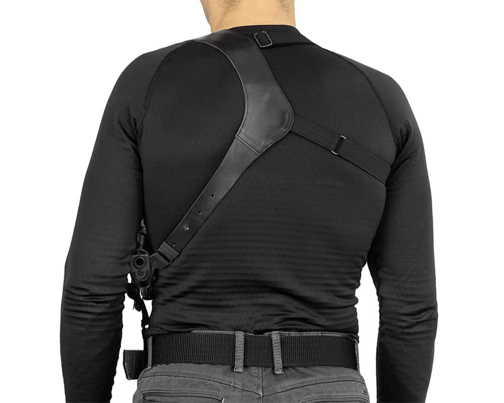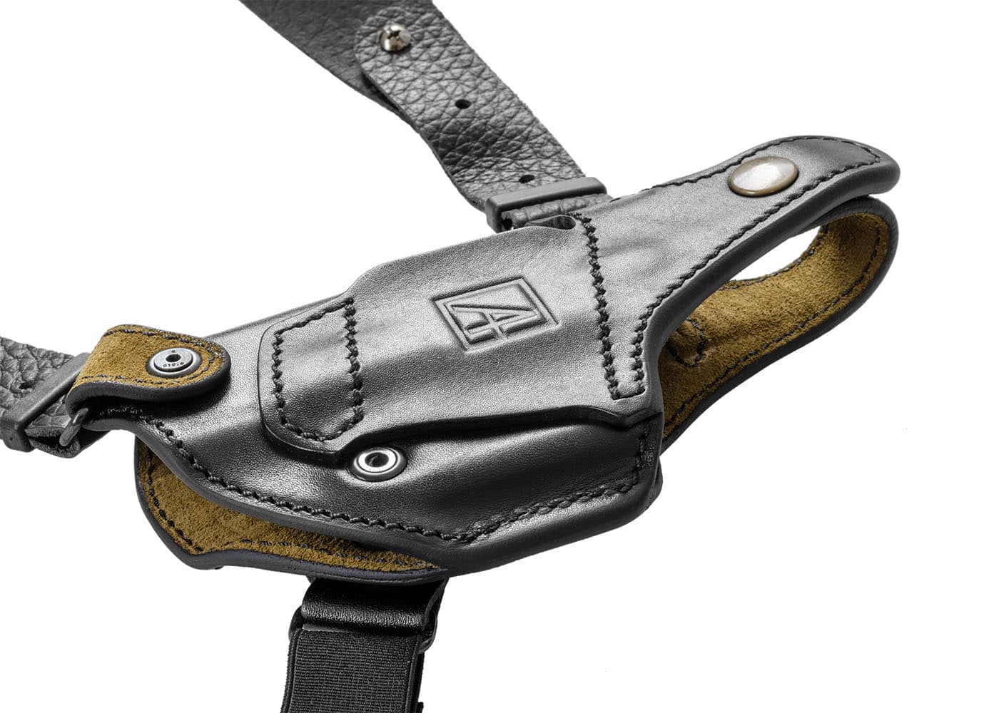 Материал: кобура — кожа+термопласт+замша (трехслойный термосендвич), плечевая лямка — кожа