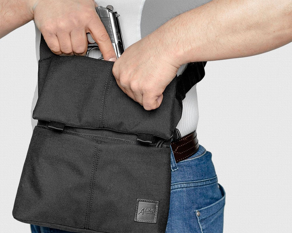 Ежедневная городская сумка с возможностью скрытого ношения короткоствольного оружия. Сумка состоит из нескольких отделений, которые позволяют размещать короткоствольное оружие и магазины к нему, средства самозащиты, документы, гаджеты и устройства с диагональю экрана до 10’, а также предметы необходимые в повседневной жизни. Оружие и средства самозащиты располагаются в скрытом отделении, вплотную прилегающем к телу владельца, в универсальном вкладыше оригинальной конструкции. Сумку удобно носить на плече.поясная сумка через плечо а39 a-line