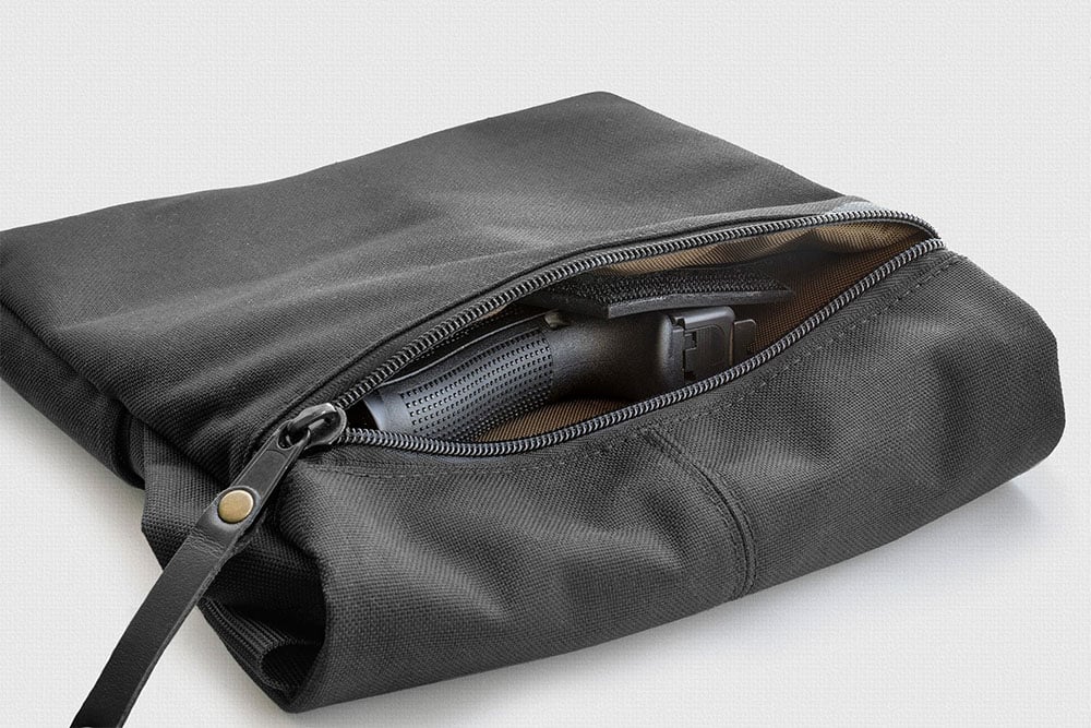 - карман со скрытым доступом с тыльной стороны, не виден окружающим и недоступны ворам, в котором находится универсальная регулируемая кобура на платформе, крепится на внутренней велкро-панели, совместима с большинством моделей пистолетов и револьверов и позволяет разместить оружие в удобном для извлечения положении; при желании кобуру можно вынуть и использовать основное отделение на свое усмотрение.