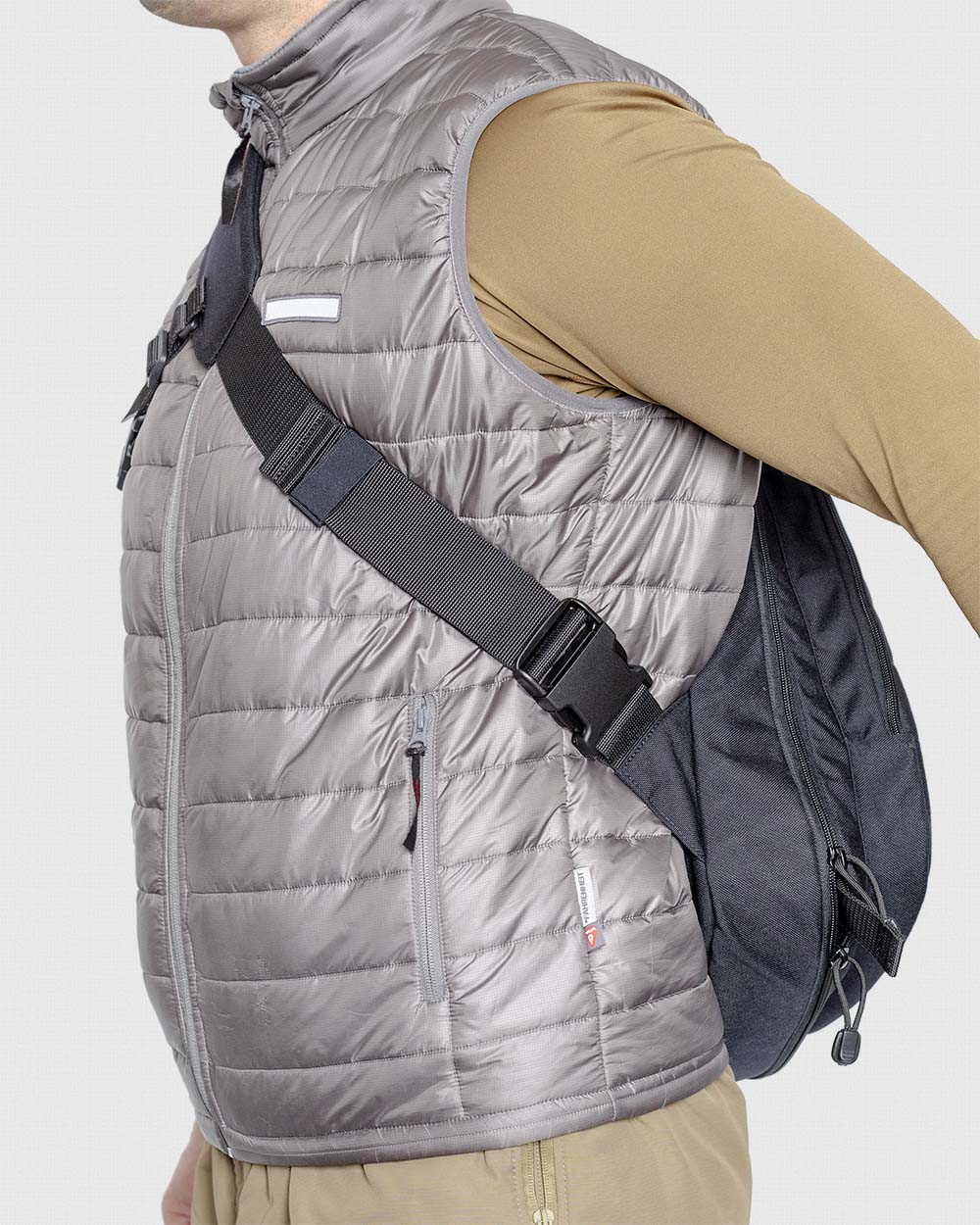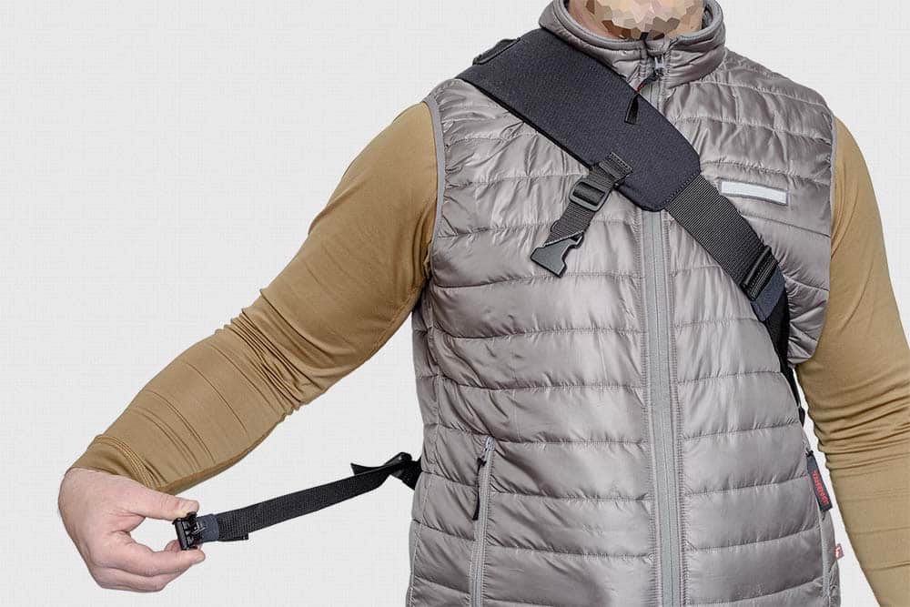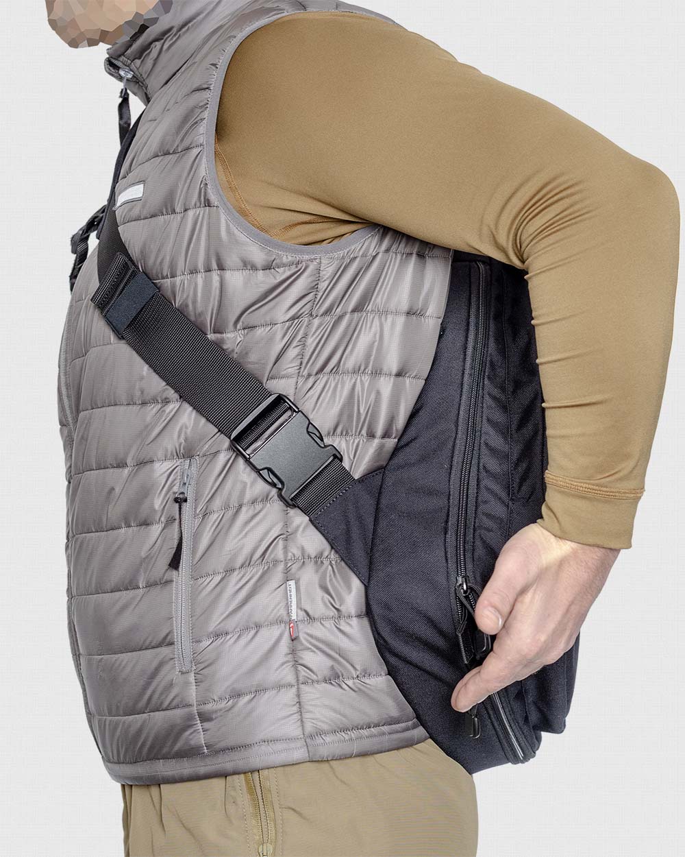 - регульована плечова лямка для носіння з системою екстреного скидання і додатковим ременем-фіксатором;