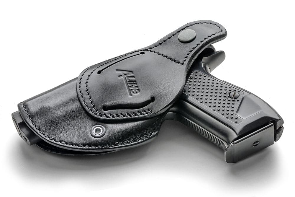 - двухкутове шкіряне кріплення для носіння на ремені брюк шириною до 4 см;