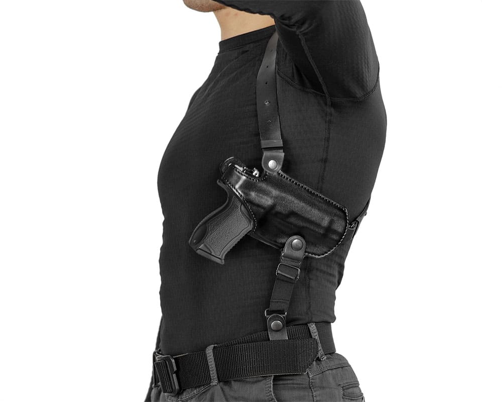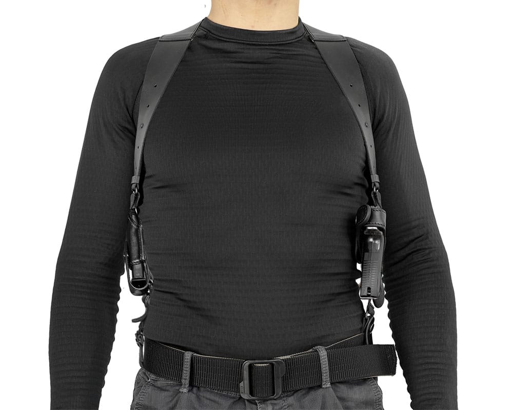 Матеріал: кобура – тришаровий термосендвіч (шкіра+термопласт+замша), плечові лямки – шкіра