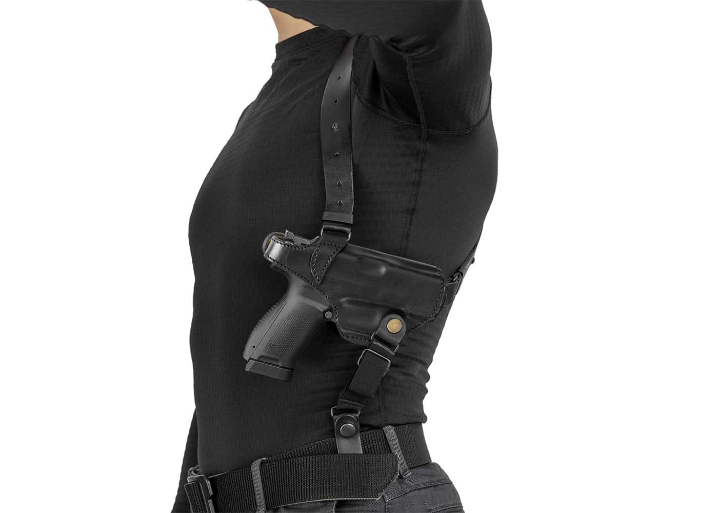 Матеріал: кобура – тришаровий термосендвіч (шкіра+термопласт+замша), плечові лямки – шкіра