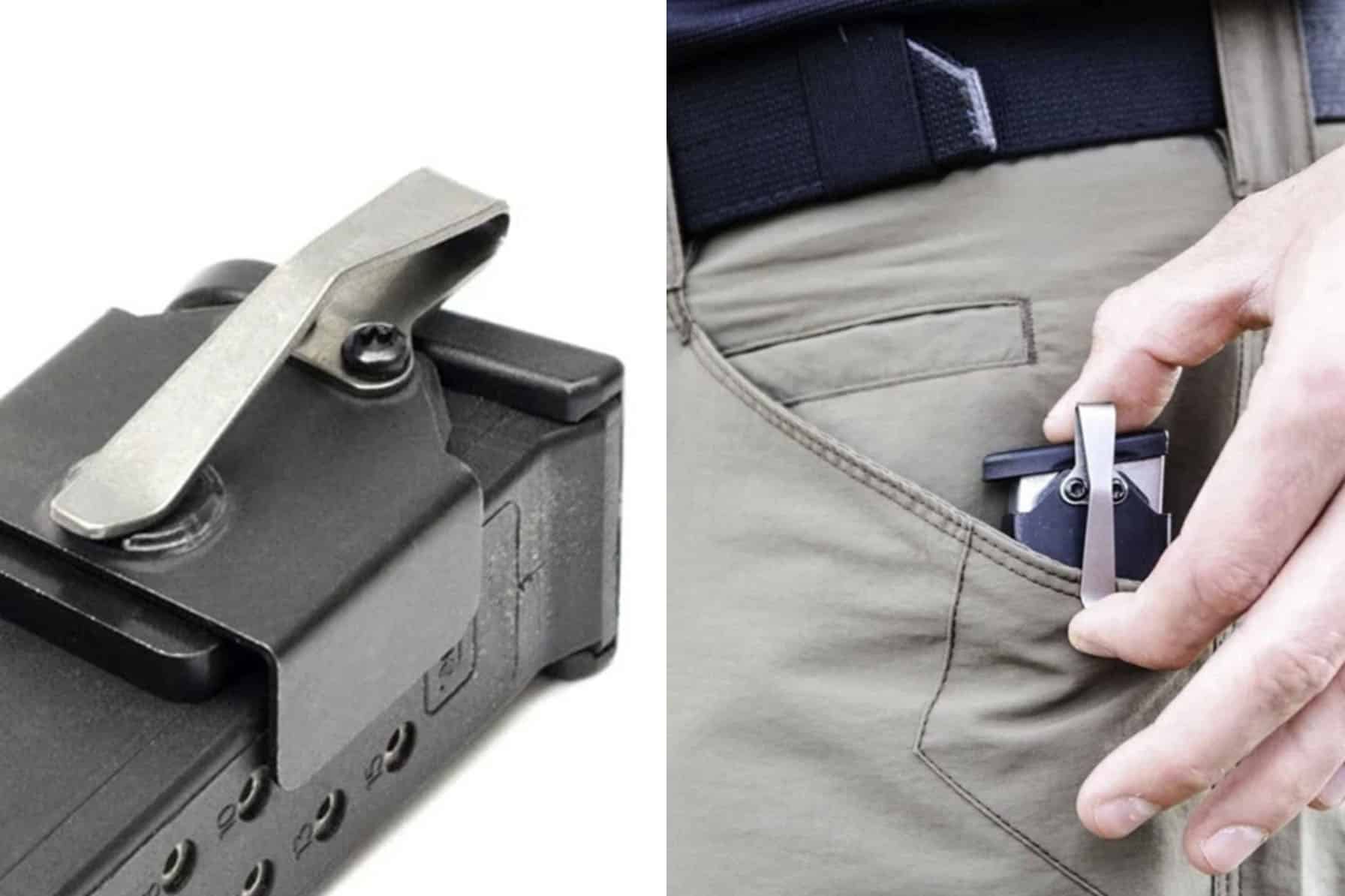 Тримайте свої магазини (обойми) завжди під рукою з кишеньковим тримачем магазинів з магнітною кліпсою. Виготовлений із міцної неіржавкої сталі, він вирізняється високою зносостійкістю і надійною роботою. Зручний механізм, що витягується простим натисканням, дає змогу швидко і легко дістати магазин у будь-який момент.