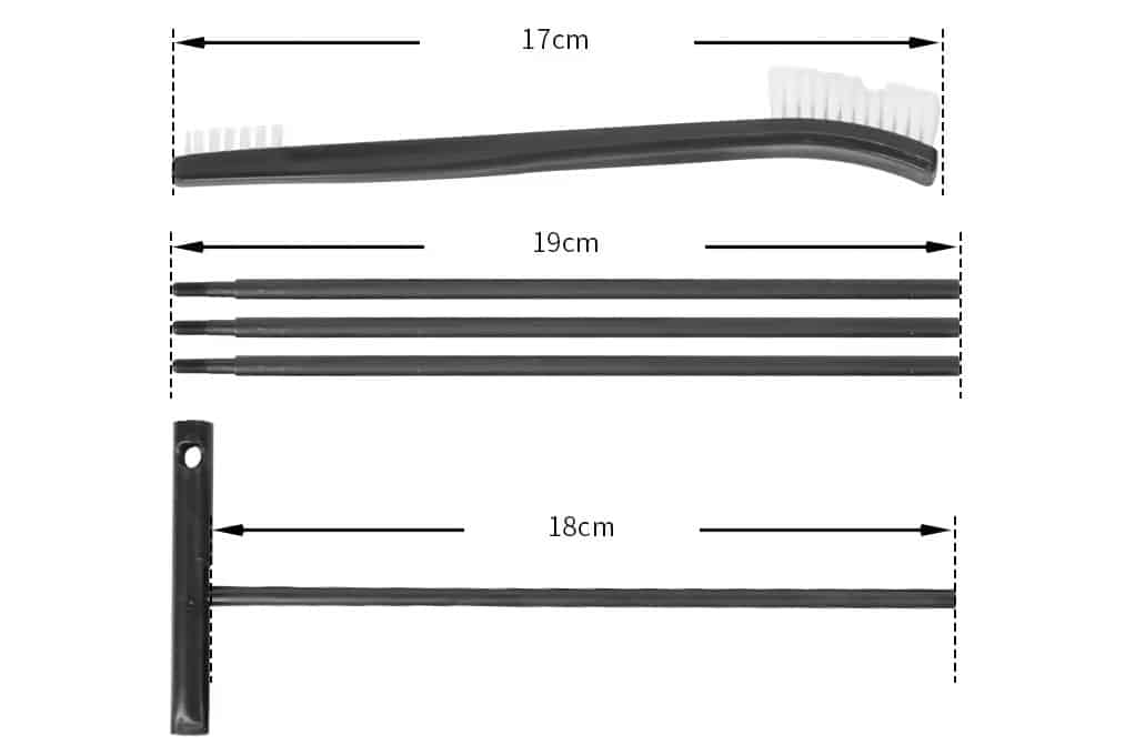 - збірний сталевий шомпол із 6 частин, діаметром 5 мм із поворотною складаною Т-подібною ручкою (максимальна довжина 83 см);