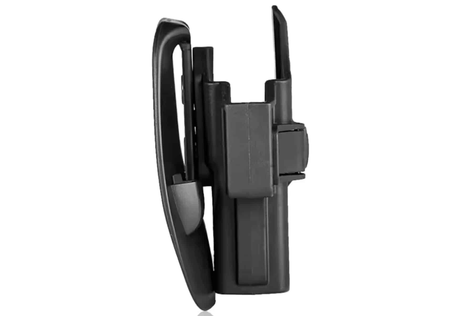 Основне призначення кобури – носіння пістолета на поясі. Надійне утримання пістолета в кобурі можливе завдяки обтиску пістолета пластиком і замку, який розблокується натисканням на кнопку вказівним пальцем. Кобура підходить для пістолета Glock моделей 43 і 43х.