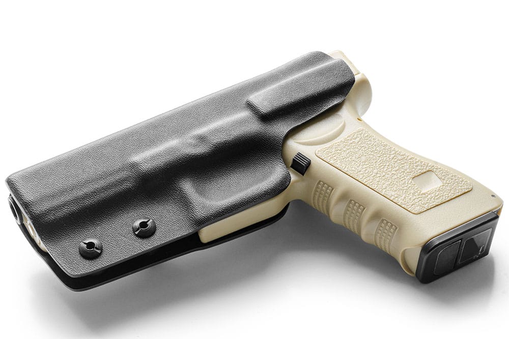 Кобура для прихованої перенесення зброї внутрібрючно. Надійне утримання пістолета в кобурі можливо завдяки фіксації пластика в певних поглибленнях пістолета, при цьому вилучення пістолета можливо за рахунок гнучкості матеріалу кобури. Кобура формована для більшості пістолетів Glock, наприклад Glock-17/19/45.кобура прихована пластикова для Glock глок кайдекс kydex київ