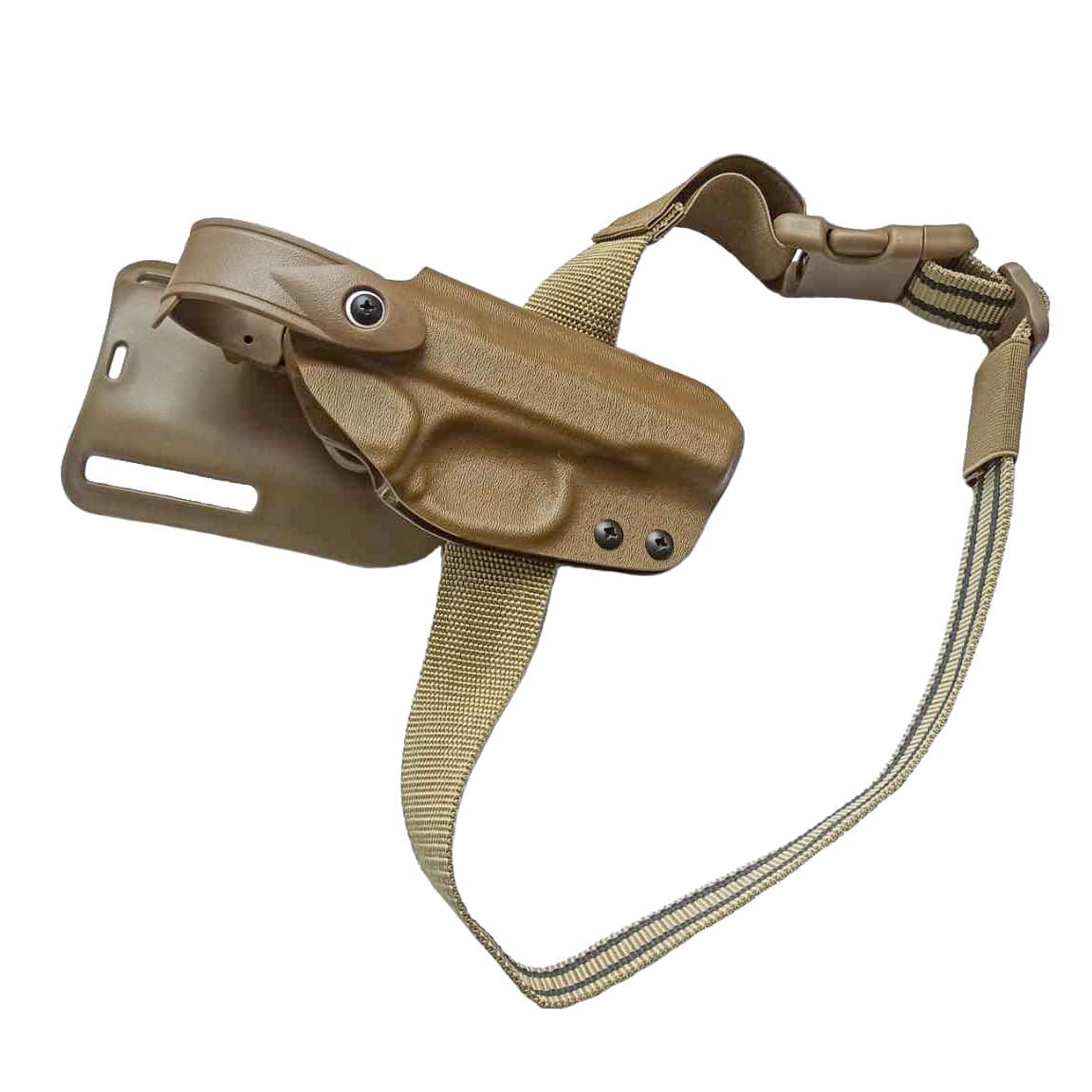 Основне призначення кобури – перенесення пістолета в кобурі на понижувальній платформі. Платформа кріпиться на пояс або РПС, якщо оздоблена Molle кріпленням, і фіксується ремінцем до стегна. Надійне утримання пістолета в кобурі можливе завдяки системі фіксації SLS.кобура пм кайдекс