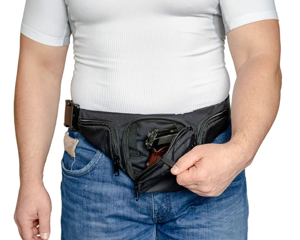 Сумка-кобура розроблена насамперед для переконаних прихильників комплексного підходу до питань особистої безпеки, прихованого носіння зброї. Головна відмінність від звичайної сумки – система екстреного доступу до зброї. Сумка складається з кількох відділень, що дозволяють розміщувати короткоствольну зброю, ключі та документи. Зброя або засоби самозахисту розташовуються у відділенні, що прилягає до тіла власника. Сумку зручно носити на поясі, зберігаючи можливість швидкого скидання сумки. При швидкісних переміщення сумка не сковує рухів користувача.сумка для пістолета на пояс фларм пм форт 12 14 17 глок