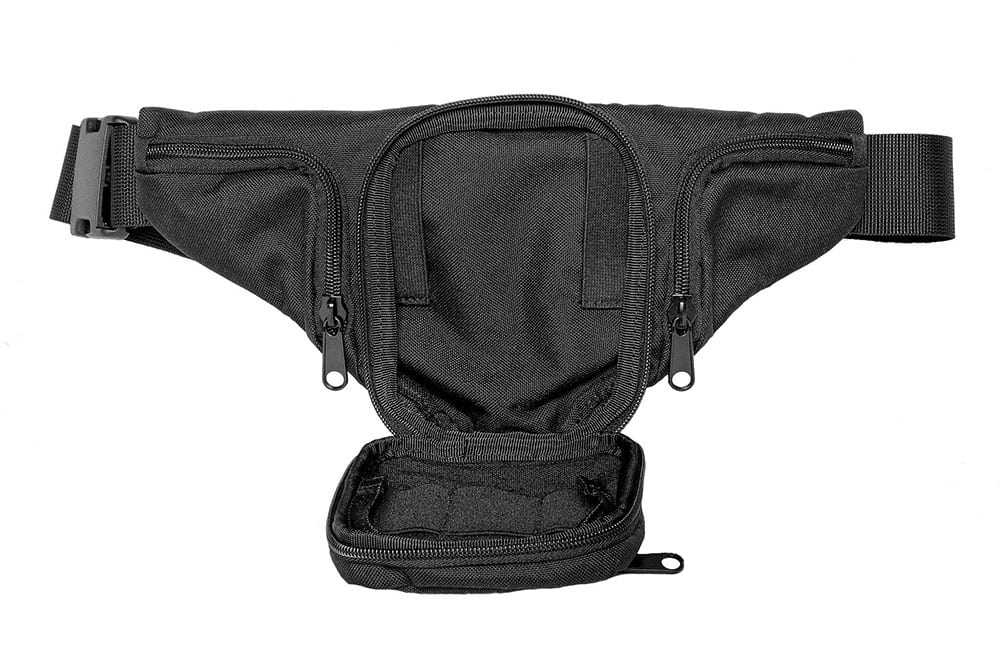 - основне відділення на блискавці розміром 15х20 см, два кріплення-гумки для розміщення пістолета, три кріплення-гумки для запасних магазинів, дві шлейки для швидкого відкриття сумки;