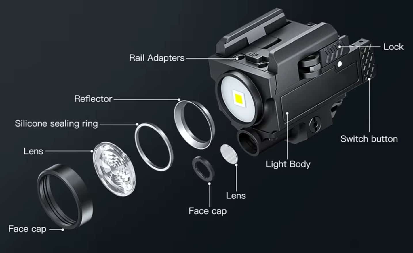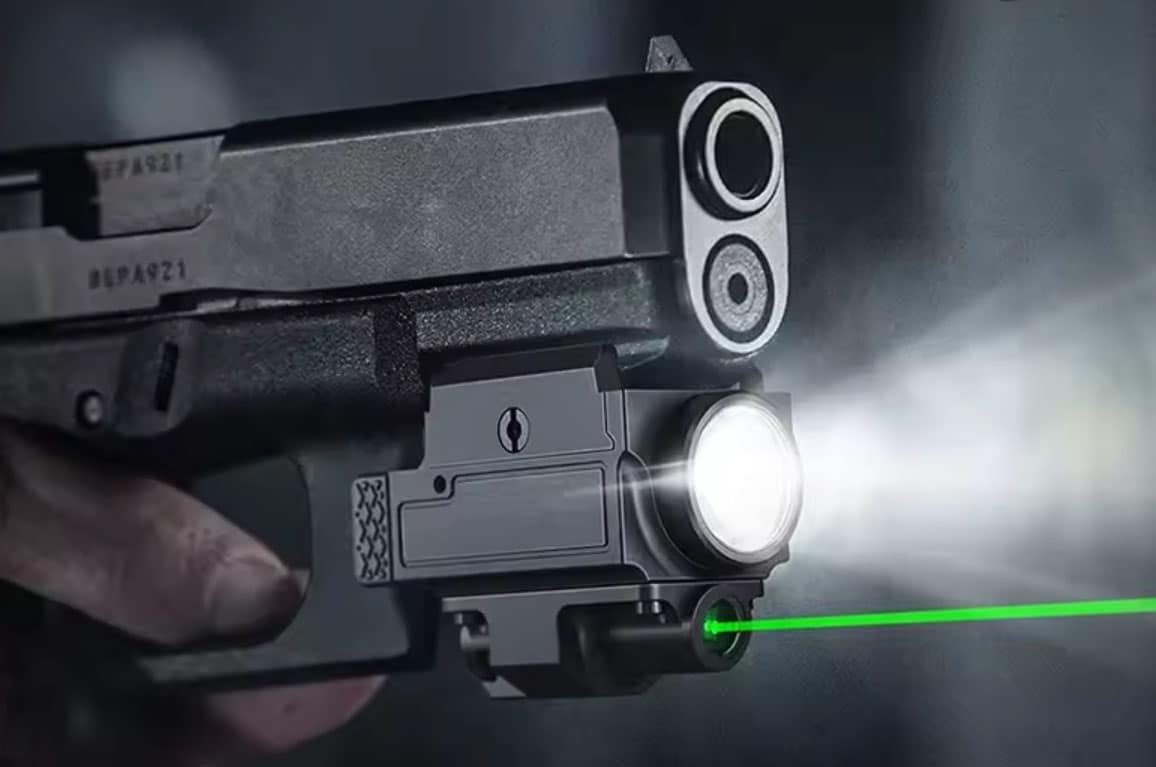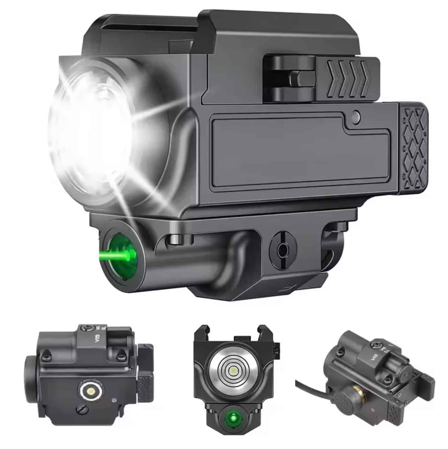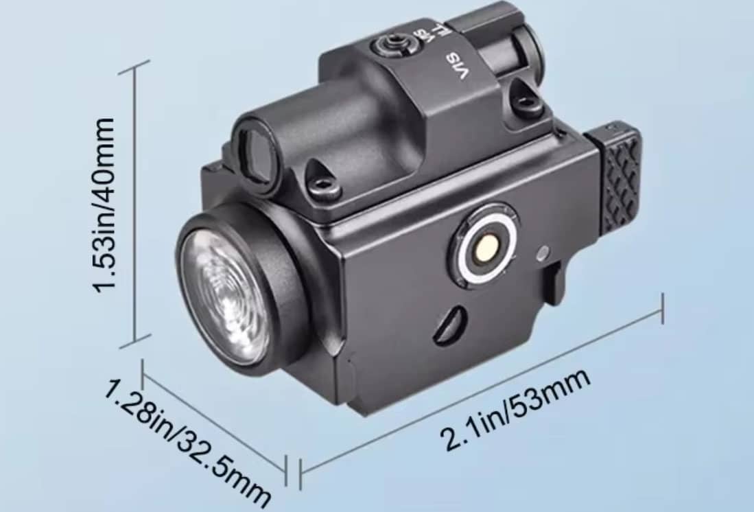 Тактичний ліхтар поєднує в собі потужне біле світло і прицільний лазер, утворюючи компактний модуль для зброї. Завдяки магнітній зарядці і вбудованому акумулятору він не вимагає заміни батарейок, а мала вага не обтяжує зброю і підходить навіть для прихованого носіння.