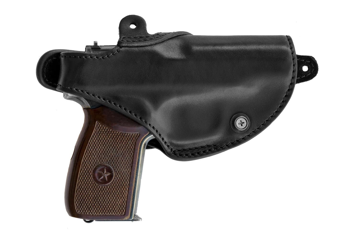 Совместимость кобуры — Пистолет Макарова (огнестрельный, травматический, газовый, пневматический) и его модификации (ВИЙ, Baikal МР-654К, Umarex Makarov, KWC KM44D), а так же другие модели, близкие к этим пистолетам по конструкции и габаритам.